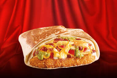 The Hash Brown Scramble Burrito is a great place to start. Scrambled eggs, hash browns, chopped up chicken nuggets and cheese combine for a confusingly delicious start to the day. This burrito doesn't need eggs at all—you can hardly taste them. But there's so much satisfying, fried goodness to enjoy that it's tough to complain.